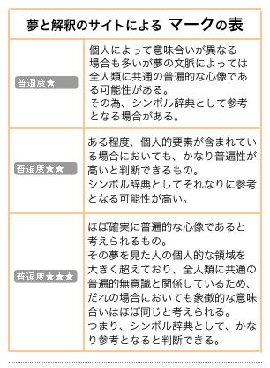 夢はその全体的な文脈を把握し、その方の個人的な要素とどのような関係にあるかと言うことを考慮したときに初めて解釈が成り立つものであって、ただシンボル辞典に当てはめていけば解釈が成り立つというものではない、ということをご理解いただければ幸いです。